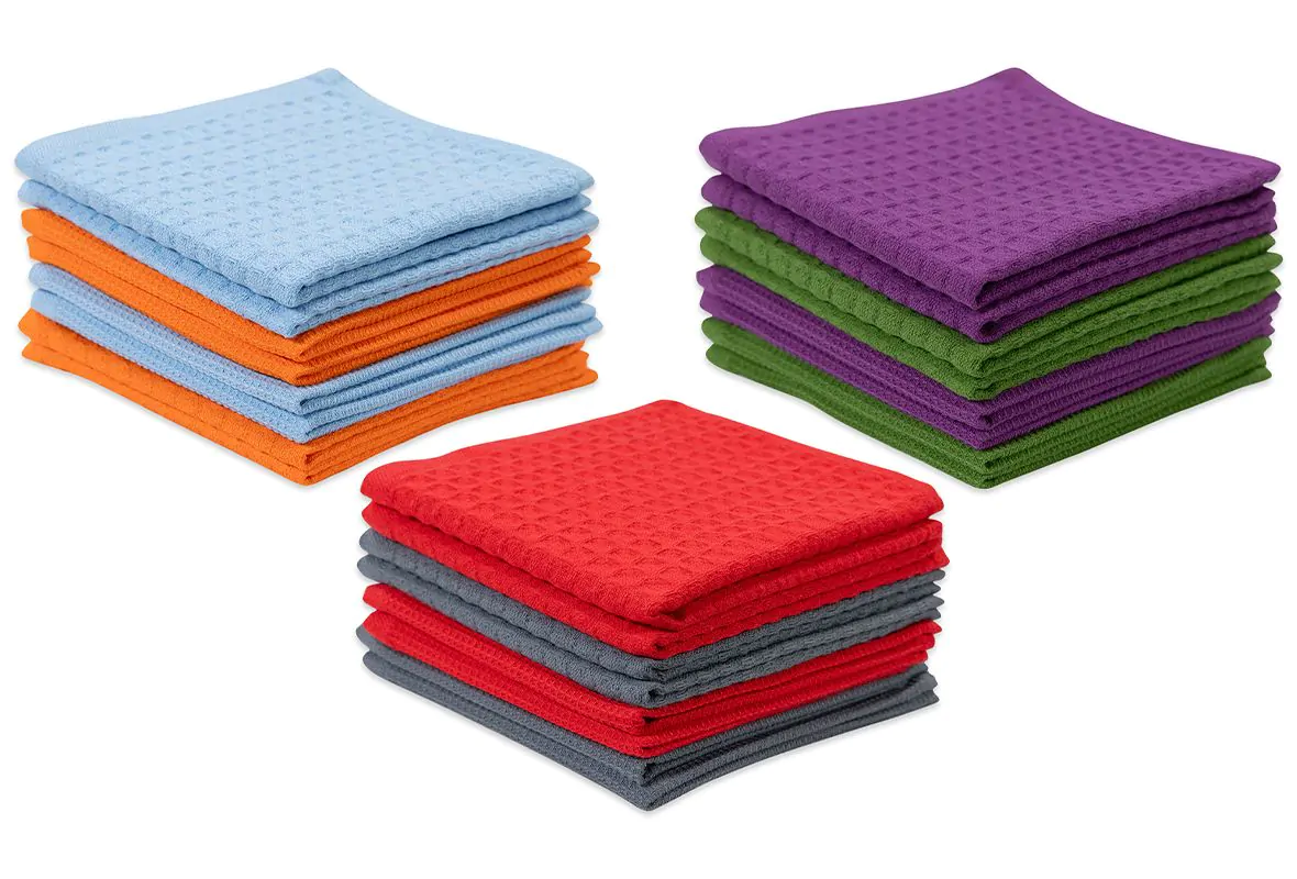 - 4 – 12×12 cloths with a small waffle design (2 in each color)