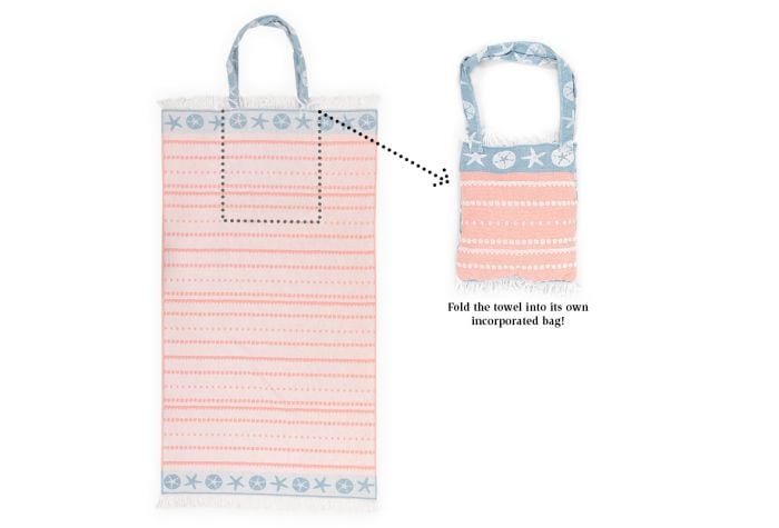 - This two-in-one item is sure to make your life a day at the beach! It is a Hammam towel. that turns into a beach bag! Pack your bag and head out to the pool. the beach or out shopping! Hammam towels are known for being lightweight. quick drying. and absorbent.