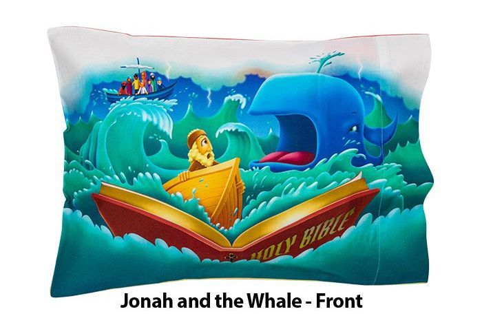 These unique childrens pillowcases (12″ x 18″) combine vibrant childrens bible story imagery (front). and the beloved childrens bible stories (back). that you can enjoy reading to your little one over and over again. Creation. Daniel and the Lions Den. Jonah and the Whale. Noahs Ark. and the story of Baby Jesus.
