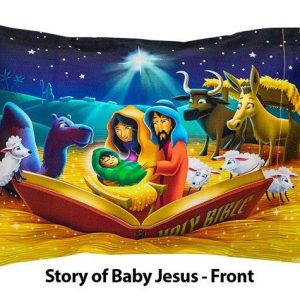 This unique childrens pillowcase (12″ x 18″) combines vibrant childrens bible story imagery (front). and the beloved childrens bible stories (back). that you can enjoy reading to your little one over and over again. Choose your favorite or collect them all! Creation. Daniel and the Lions Den. Jonah and the Whale. Noahs Ark. and the story of Baby Jesus.