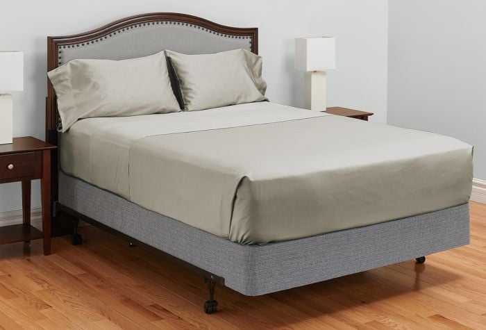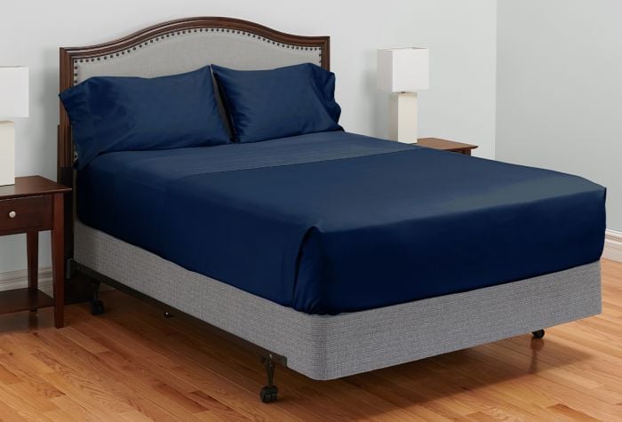 Split King Set – 1 flat sheet 110 x 108. 2 fitted sheets 39 x 80 x 15. 2 pillowcases 21 x 40