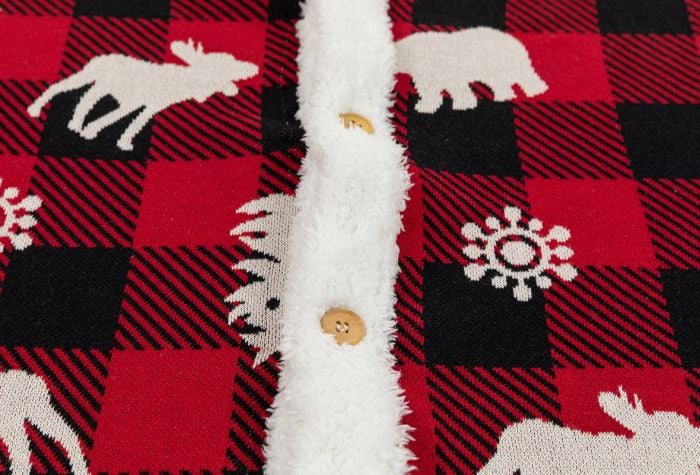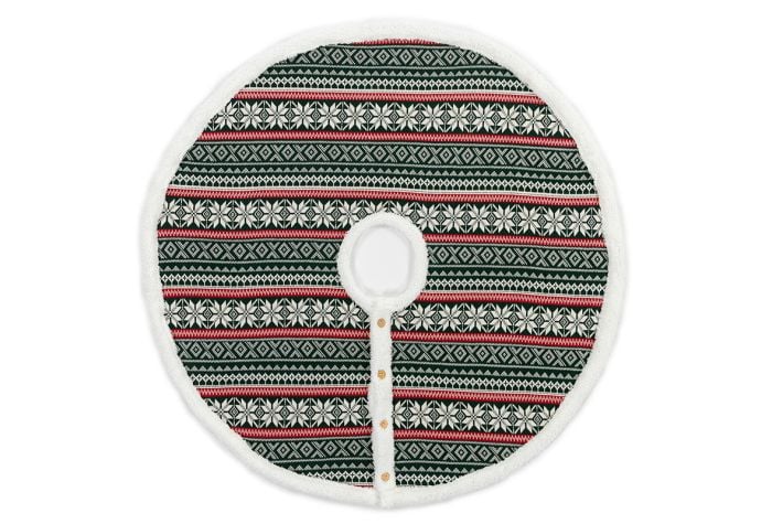 Merry Christmas from MyPillow! Our first ever MyPillow tree skirt brings nostalgia home for the holidays! This 100% Cotton (exclusive of trims). knit Snowflake pattern will have you thinking of white Christmas’ gone by. while getting ready for more to come. The skirt is 52 diameter and features a four wooden button closure. Don’t forget the matching Snowflake Throw and Stocking(s) to complete the look.