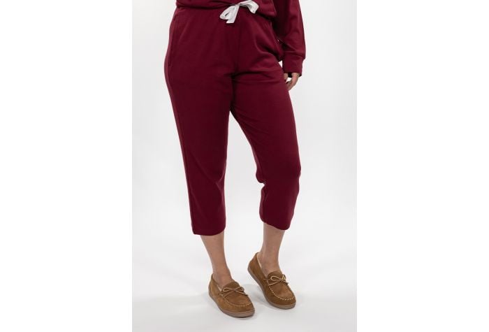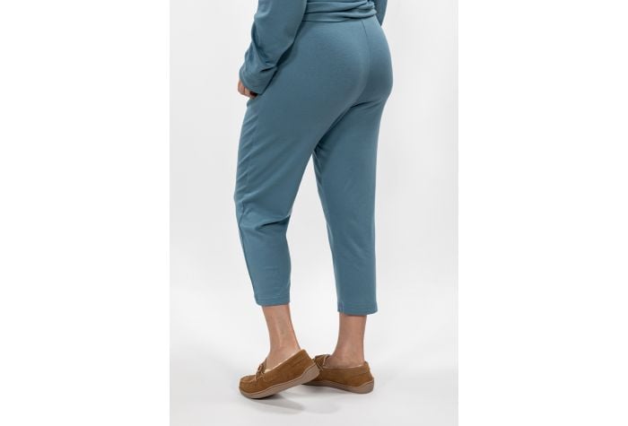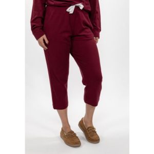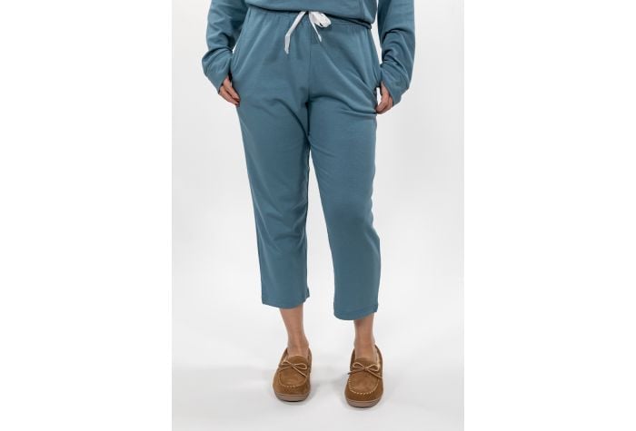 These perfectly cropped sleep pants are tied up with a bow with it’s beautiful ribbon drawstring. They are extremely comfy on cotton/modal/spandex fabric and feature side seam pockets. Don’t forget to complete the look with its matching Cross Over Sleep Top.